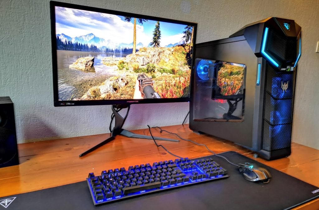 I mainly tested this with the Acer Orion 5000 which has a GTX1060 and then later my main PC which has a GTX1070. Neither of which can really test this monitor to its limits, for example, a RTX 2080 Ti will struggle to achieve 144fps at 4K on many AAA games, though the G-Sync would help reduce the issues it faces with this.
