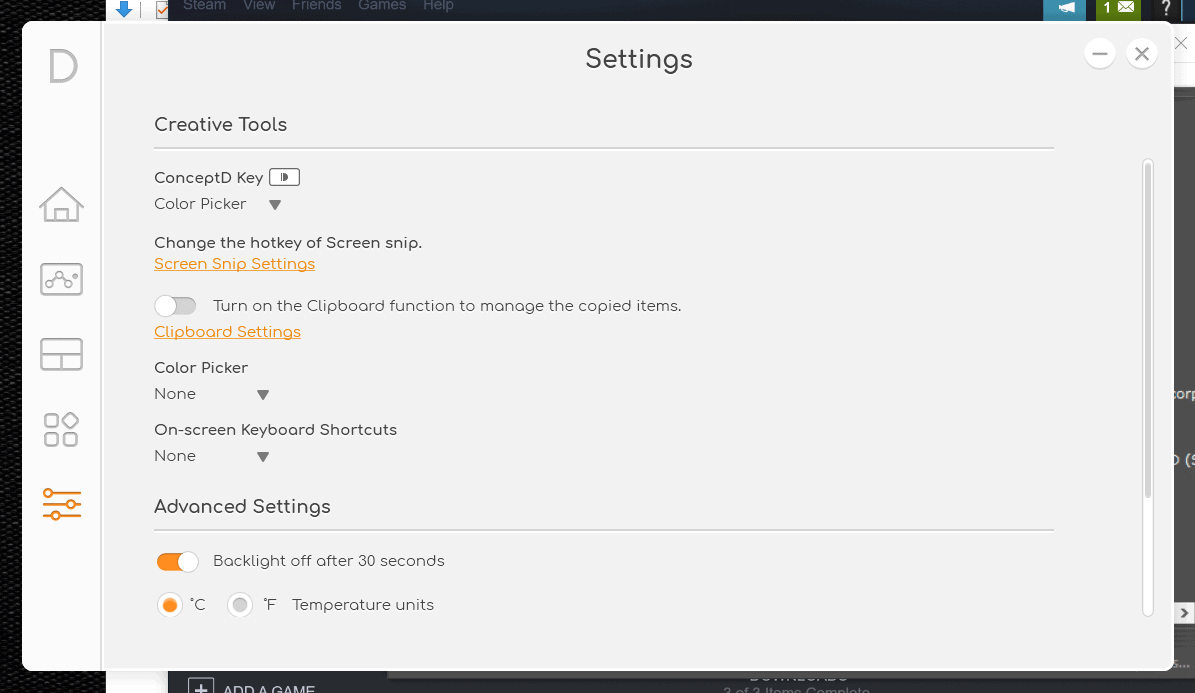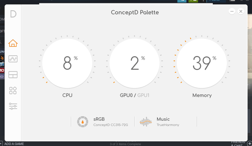 On the bright side, the ConceptD Palette seems to be adapted from the Predator software and offers some useful monitoring and customisation features.