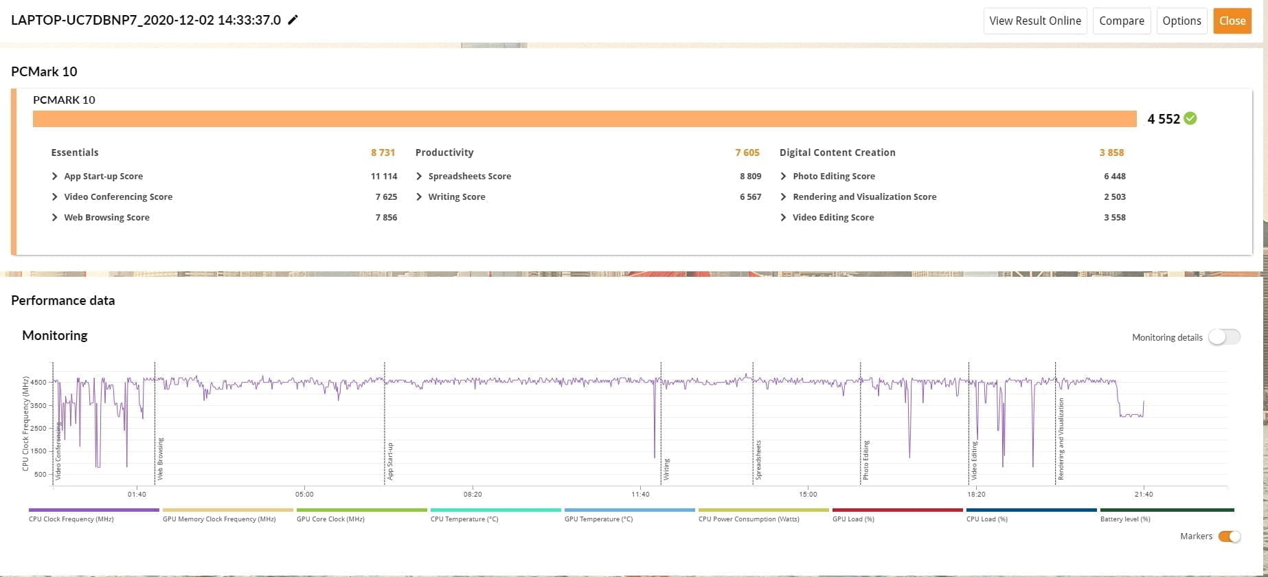 - PCMark 10 : 4552