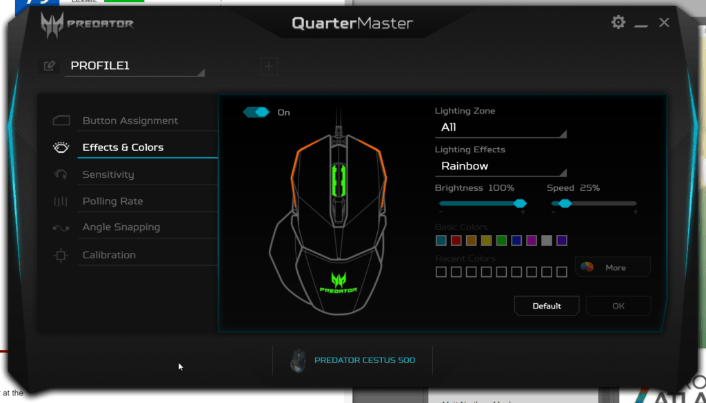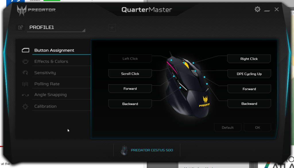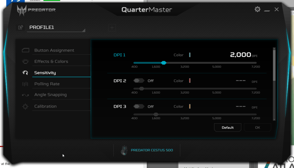 There are five programmable profiles allowing you to alter sensitivity on the fly while gaming with all these profiles configurable via the Acer Quartermaster software.
