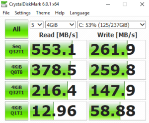 There are two data drives in the Helios with one being a 256GB Hitachi SATA SSD, and the other a 1TB Western Digital mechanical drive. While the use of SATA is disappointing over NVMe, it performs well and there is no lag loading up applications or doing any work. The 256GB size does mean you are going to be limited to the number of games you install on this, so you may be forced to go with the mechanical drive here, which would slow down load times a little. You can pick up a 500GB SSD for £80 or a Samsung 970 EVO 500 GB only costs £134.99, so I would definitely upgrade the storage if I bought this.