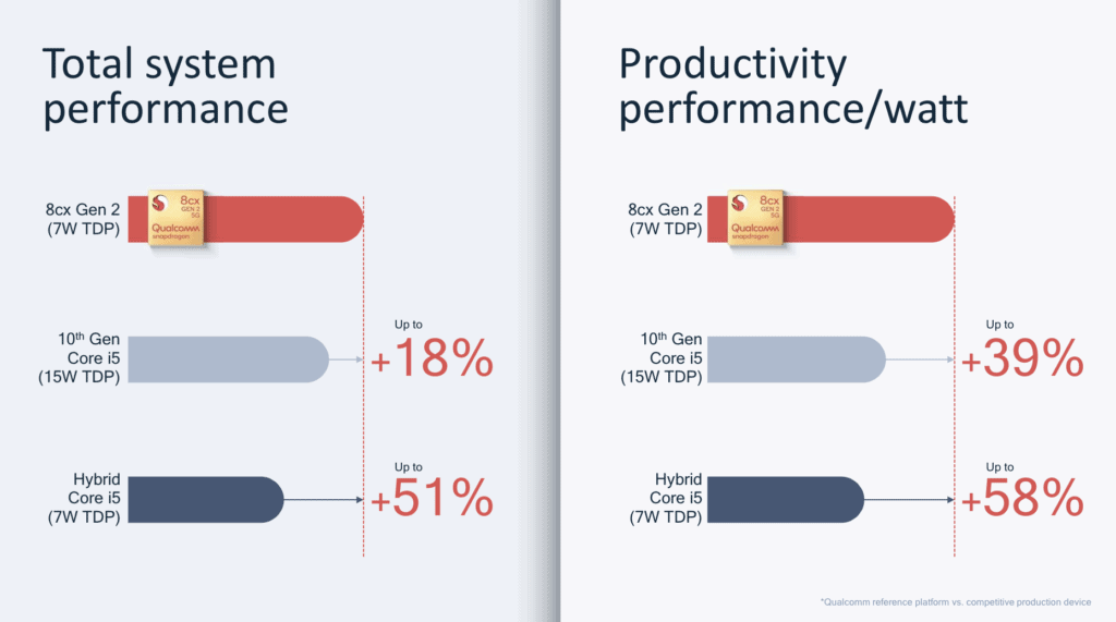 Qualcomm claim that the new chipset can offer a 18% performance gain over a 10th gen Intel Core i5