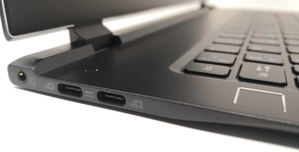 There are understandably no full-sized USB ports here, they would need to be thicker than the laptop, but you get, more generous than some, two USB 3.1 Gen 1 Type-C ports allowing you to both charge your device and have a peripheral plugged in.