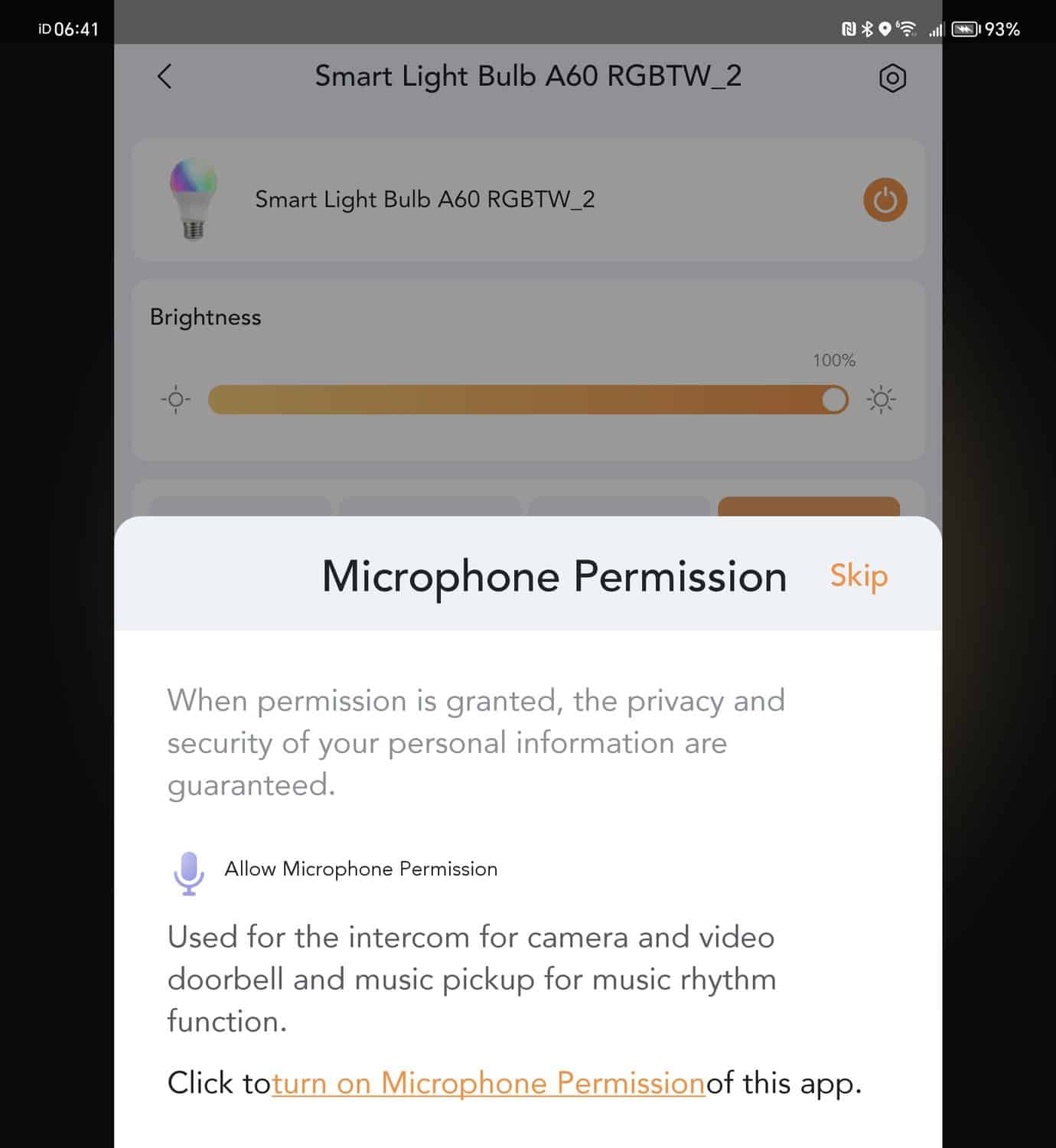 • Smart RGBTW Bulb turned on