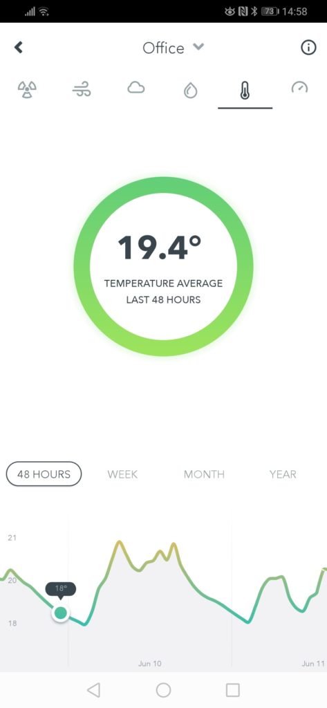 While this can be a little annoying it is not too much of an issue, the device itself will show you a coloured ring giving you an overview of the current air quality status, though you will need to go into the app to see a breakdown of each reading.