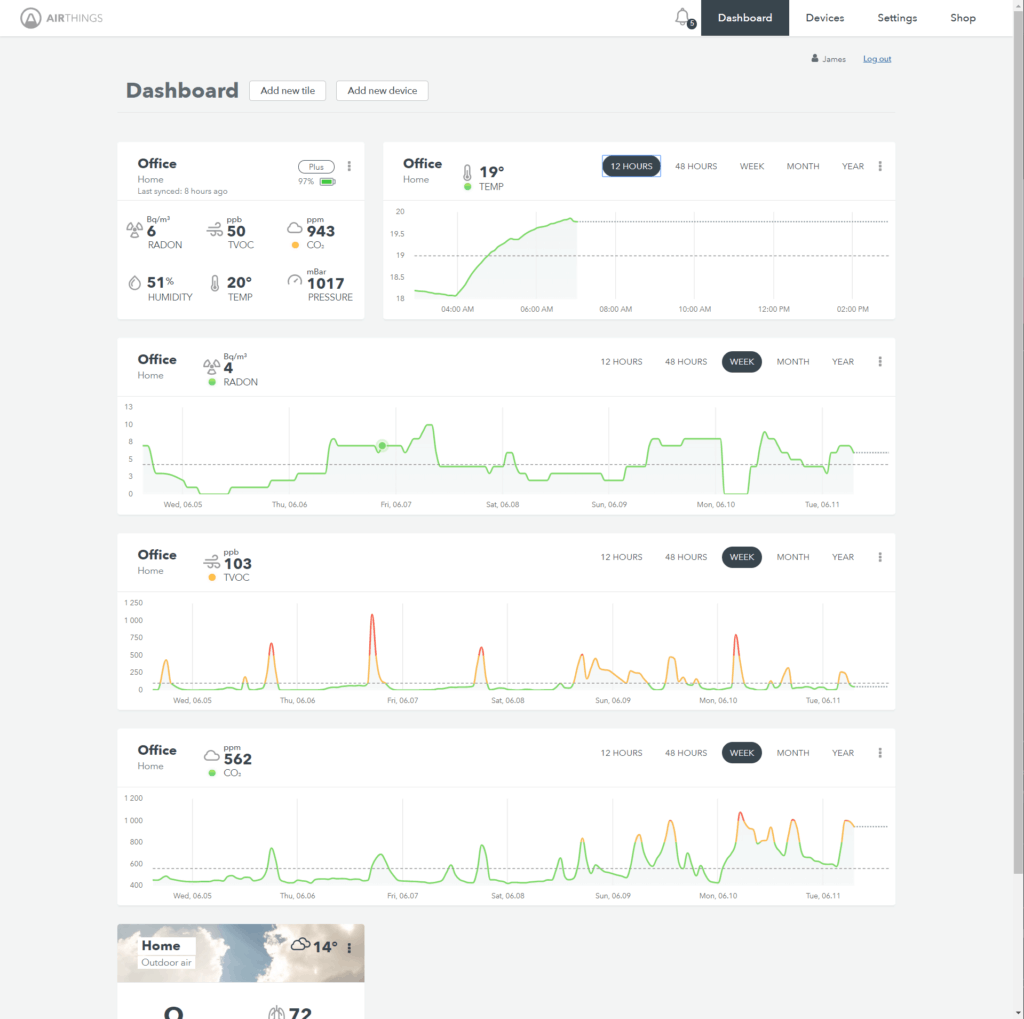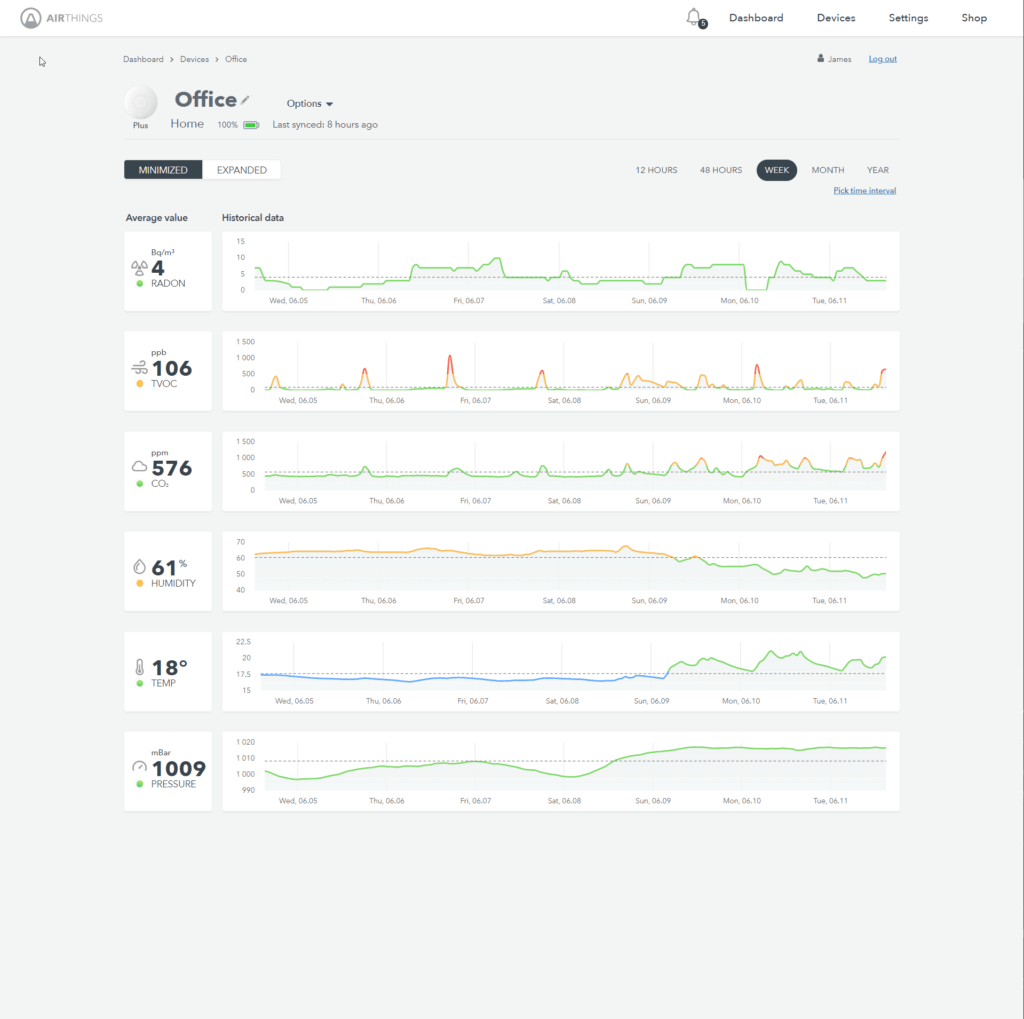 With regular syncing you can see how the air levels differ throughout the day, you can view this data either via the app or via the web dashboard, which is a preferred medium to view data in my opinion.