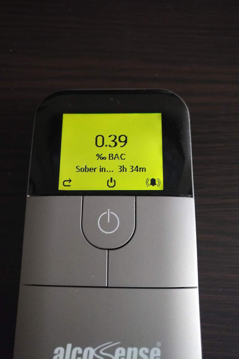 I tested the device on a birthday night out in Manchester and managed to get a bit drunker than my last review. I had it at the default setting of blood alcohol levels in the g/l format so my upper limit was 0.8‰ for England. After 3 pints of quite strong beer over the space of around 2 hours I went from 0‰ to 0.39‰ so I would have been technically safe to drive. However, that was shortly after my last pint, so my alcohol levels would have continued to rise at this point.