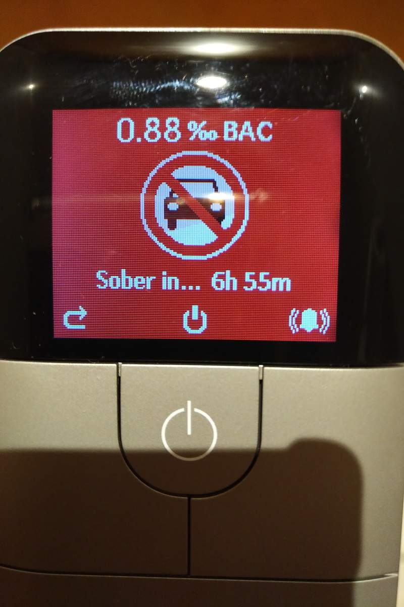Unfortunately, the problem with trying to review a breathalyser when drinking is that I must have gotten too drunk to carry on doing the readings and the 0.88 was the last result I measured.
