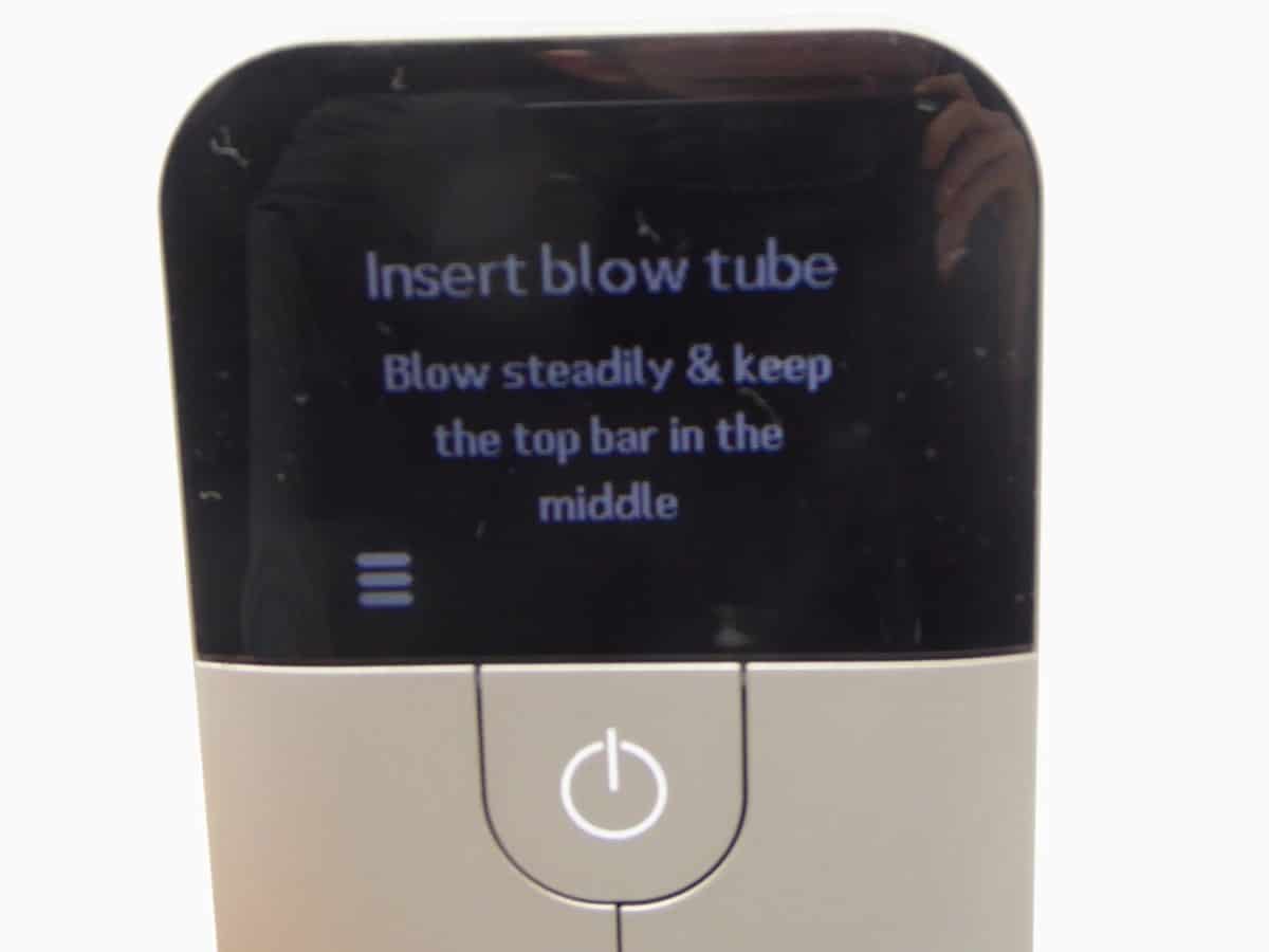 Using the device is incredibly straightforward, you just need to open it up, plug in the tube and provide a steady flow of breath. The device will tell you how hard to breathe and for how long, it only takes a few seconds then it gives you an immediate reading.