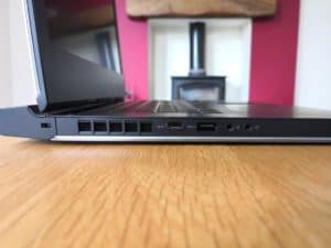 The impressive specification is made a little more understandable when you see the laptop and feel its weight. The dimensions are 25.4mm (1.0″) x Width: 389mm (15.3″) x Depth: 305mm (12.0″) with a total weight of 3.49Kg (7.69lbs). In comparison the similarly priced but lower specced Gigabyte AERO 15X measures 18.9 x 356.4 x 250 mm while weighing 2.0 kg. So Dell has quite a bit more room and weight to fit that hot power hungry chip in and the cooling system for it.