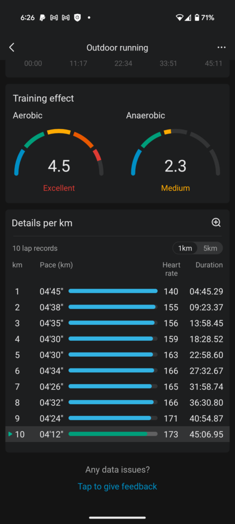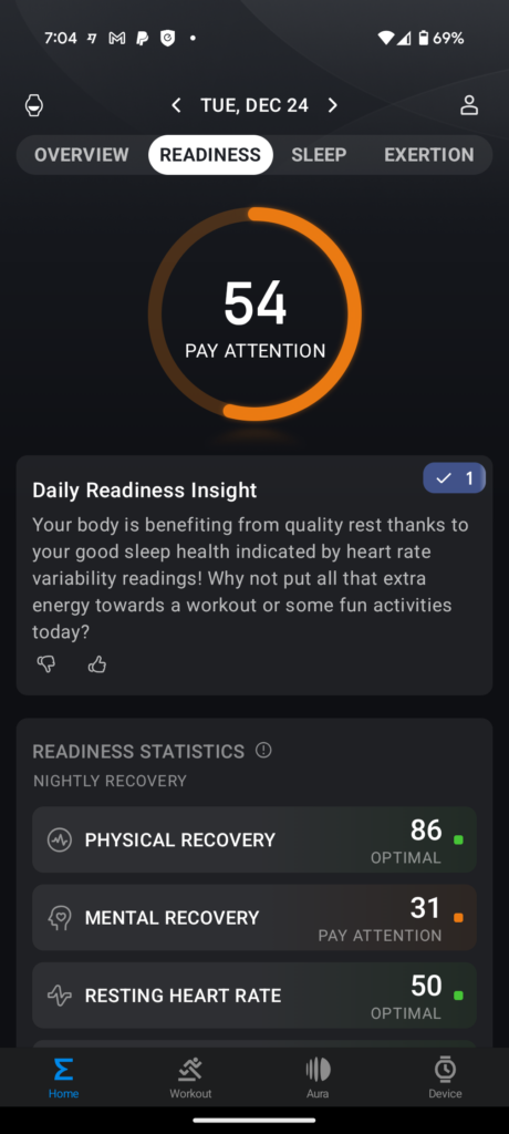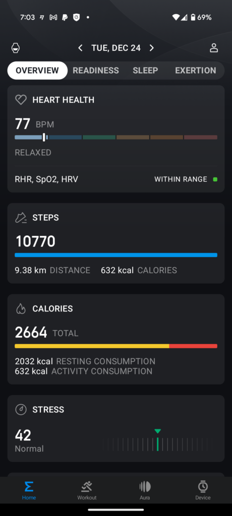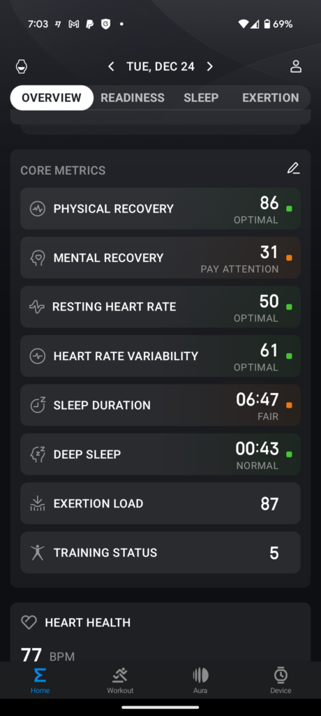 The level of data you get is impressive. I wouldn’t say it is better than Garmin, but it offers a similar level of data including things like HRV.