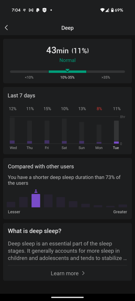 The Zepp App serves as the control centre for the T-Rex 3, handling everything from workout analysis to watch face customisation. The interface is clean and logical, though it can’t quite match the polish of Garmin Connect or Apple’s Fitness app.