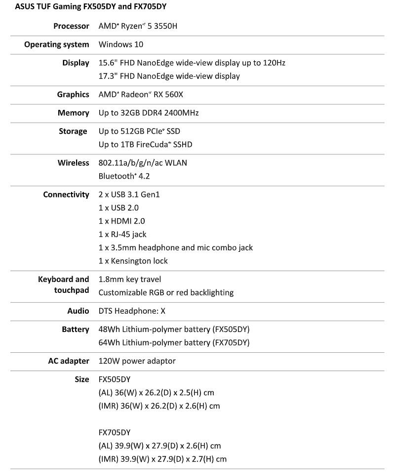 This is a 15.6-inch gaming laptop with either a Ryzen 7 3750H or Ryzen 5 3550H, and paired with an AMD Radeon RX 560X graphics card. The device will come with the option of a standard 1080p60 display or a FreeSync-enabled 1080p120 display. Memory will go up to 32GB of DDR4-2400, and various storage options exist.