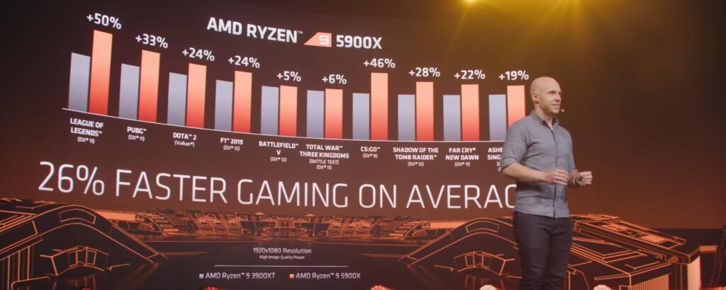 Then for gaming, AMD state Ryzen 9 5900X can deliver a 26% performance boost in CPU-limited games on average when compared to the recently launched Ryzen 9 3900XT.