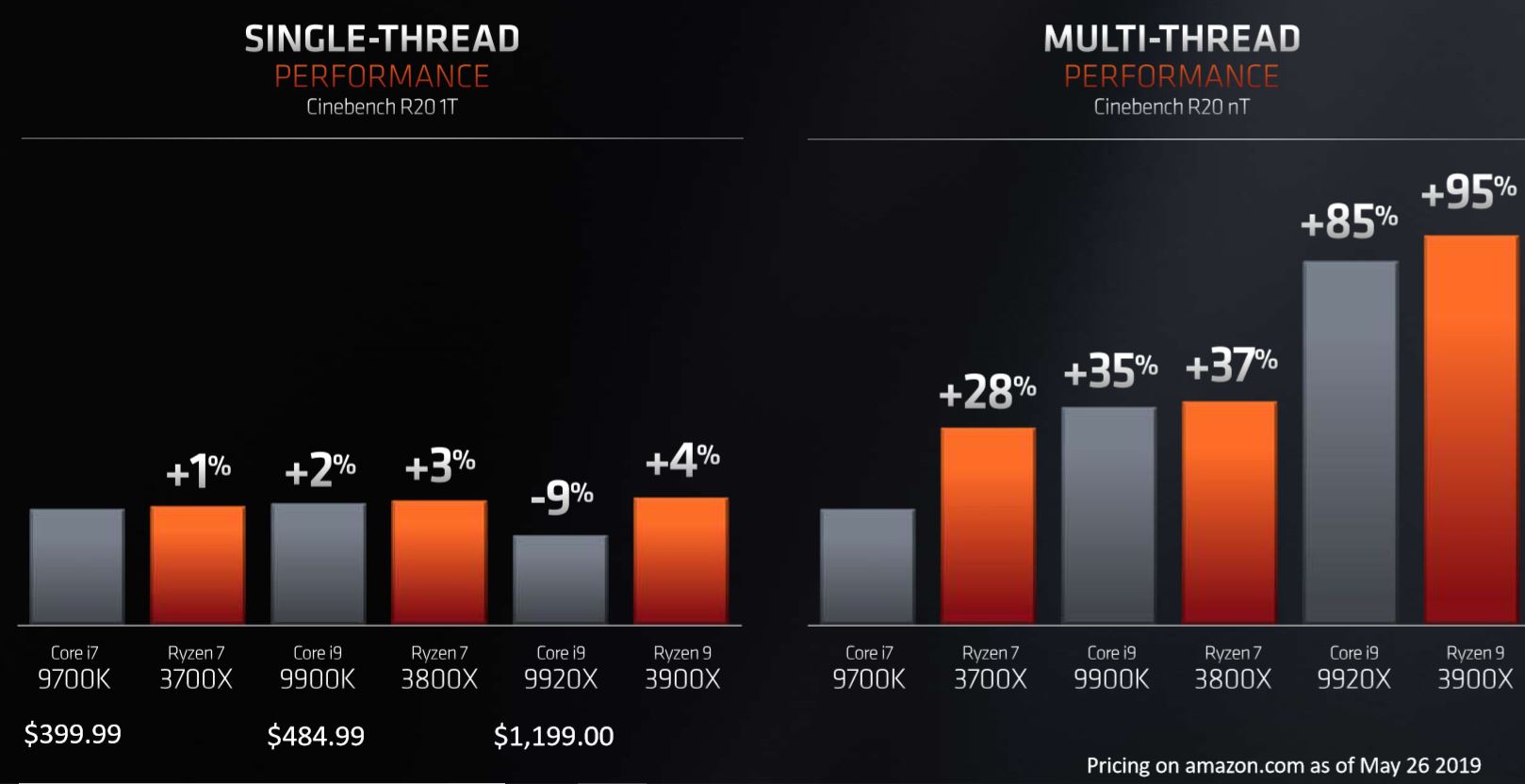 - Metro Exodus – 95.7 which is 6.7% higher than the 2700x but 5% lower than the i9-9900K