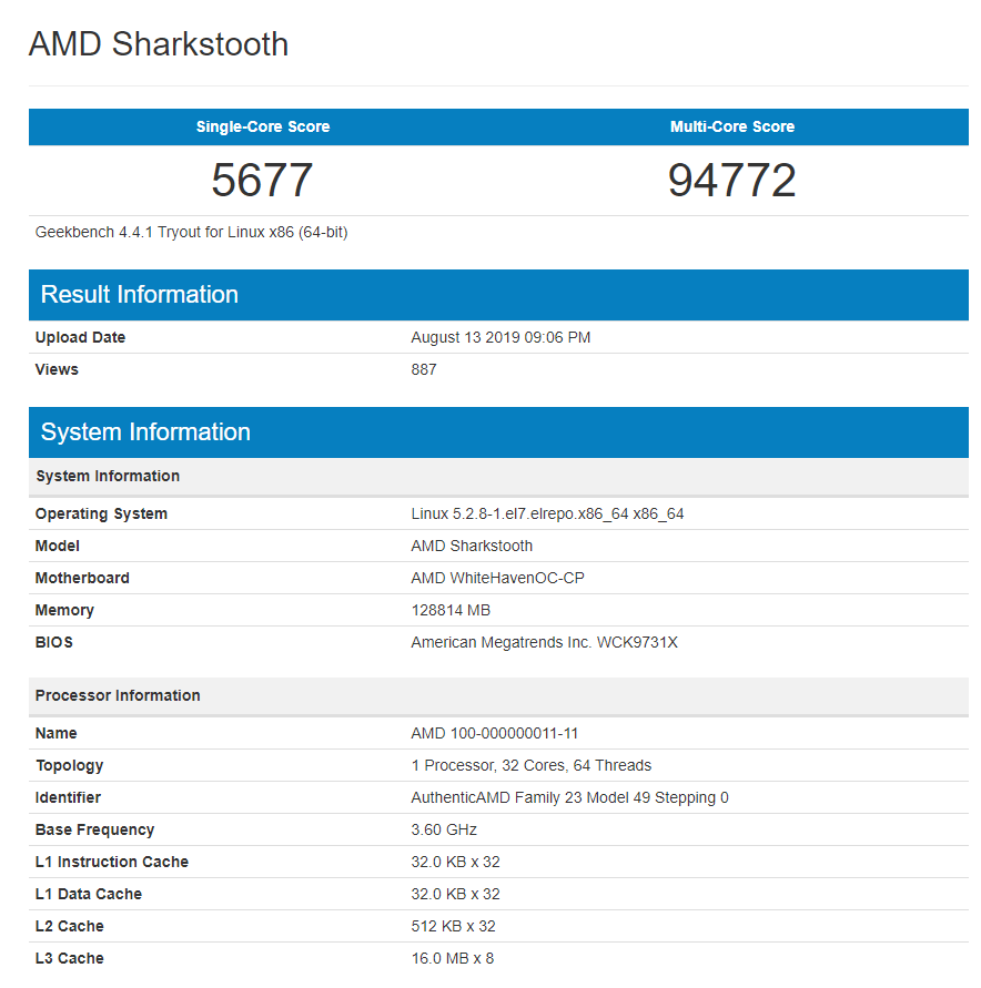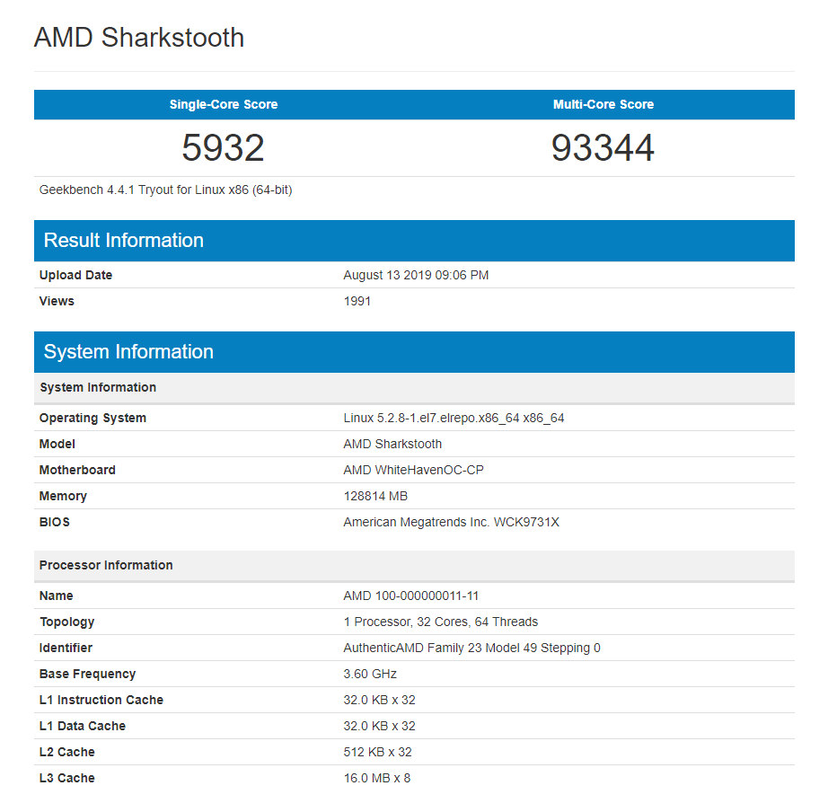 AMD Sharkstooth 32-core Zen 2 Threadripper Spotted in Geekbench – Up To 35% Faster Than Ryzen Threadripper 2990WX