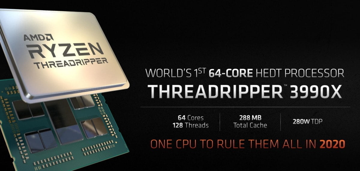 The new 3990X is basically an overclocked EPYC 7702P with the same 64 Core 128 Thread count and the same 256MB L3 cache. The EPYC is clocked at 2.0GHz with a 3.35GHz turbo with a TDP of 200W. The new Threadripper ups the clocks to 2.9 / 4.3GHz and as a result the TDP hits 280W so you will need some serious cooling, AMD recommends water cooling.