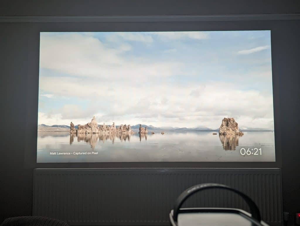 Nebula Capsule 3 Laser. The similarly shaped BenQ GS50 went up to 500 ANSI lumen but costs around £730, and the XGIMI Halo+ goes up to 900 ANSI lumen but costs £750. So, I think this projector has a good brightness level for its price point.