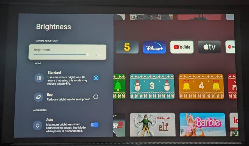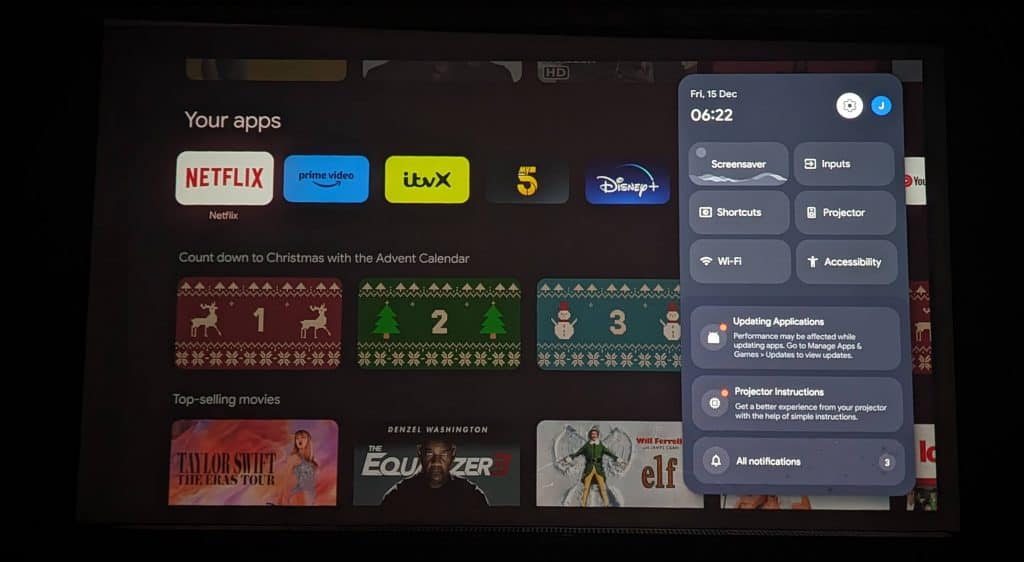 With this using Google TV, it couldn’t get much easier to set up (at least for me using Android). You power up the projector, then select Google TV (you can also set it up in basic mode) and then scan the QR code with your phone.