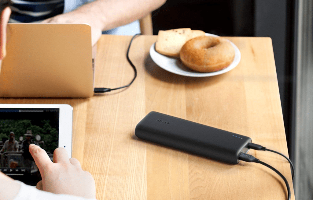 The Anker PowerCore is a powerbank that offers both traditional mobile charging as well as power delivery via its USB-C port. With its 20100 mAh charge capacity, it is capable of charging a Mate 20 Pro five times over a MacBook 2016 once fully or iPad Air 2 almost twice.