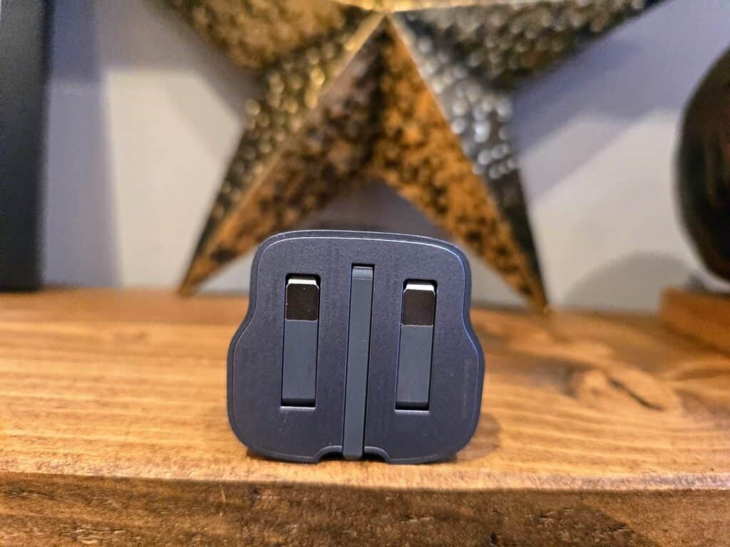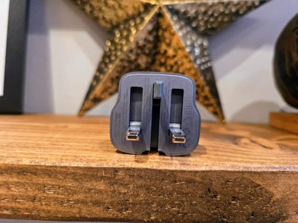 Foldable Design: The pins of the plug fold down flat inside the charger. This makes it ideal for travelling. My partner dropped an Anker charger on the floor in the past and broke the plastic grounding pin so this design would help reduce that risk.