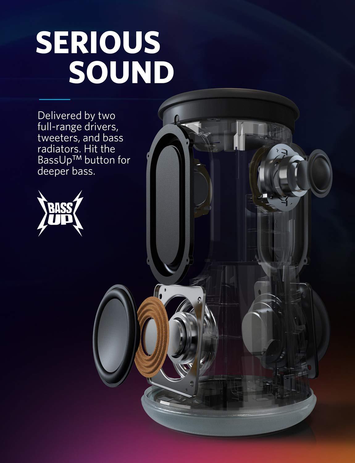 The Anker Soundcore Flare Plus has two 2-inch drivers, each matched with a bass-boosting passive radiator on the sides, and tweeters on its back and front all of which deliver 25W of sound.