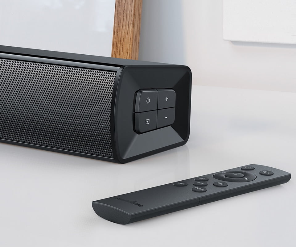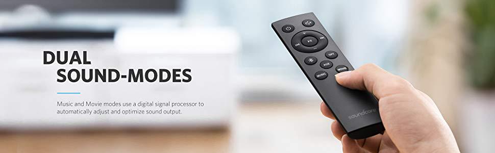 Dual Controls Use the remote to switch between input modes, adjust the volume, select a sound mode and more. For even greater versatility, Infini Mini’s built-in buttons also give you direct access to its features.