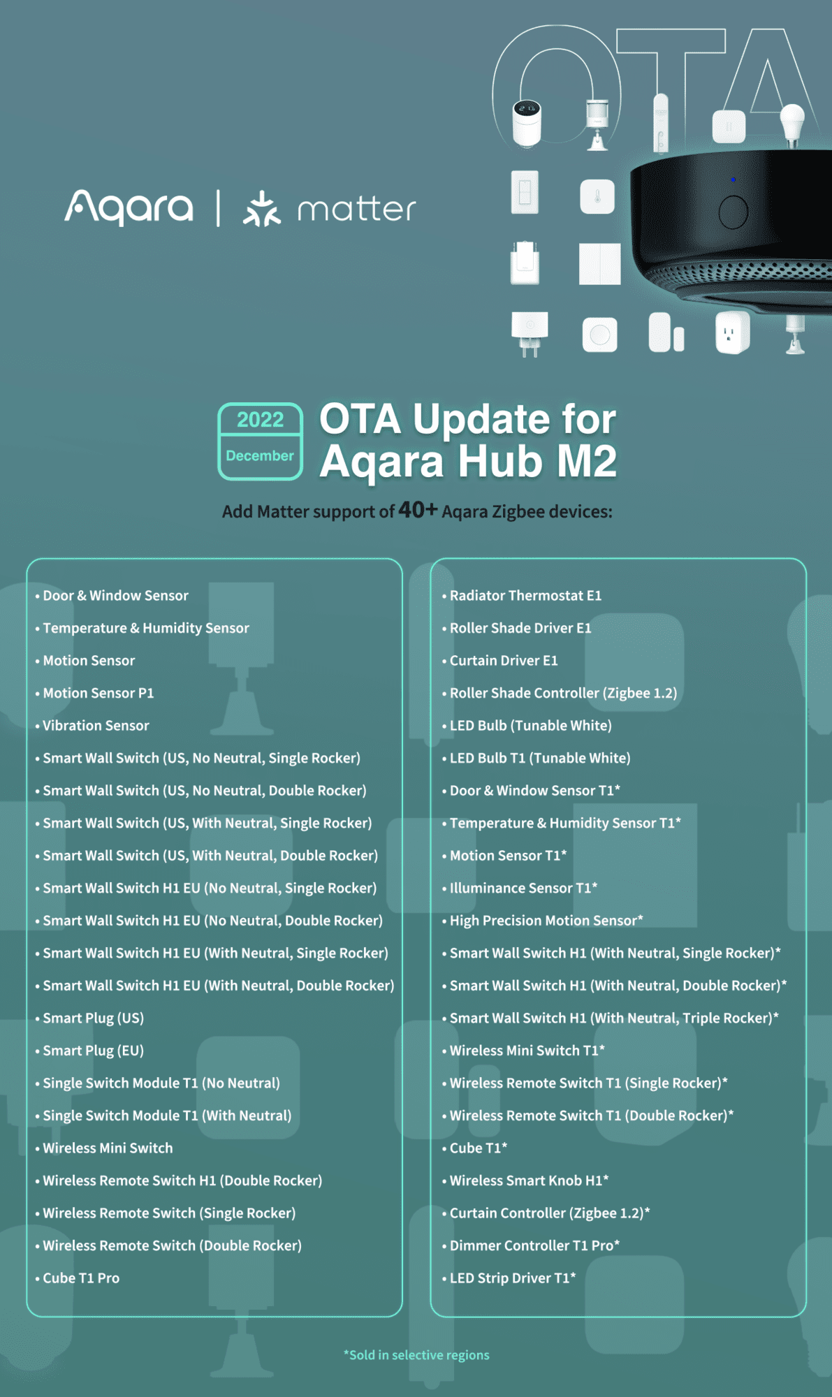 Aqara confirms Matter-compatible Devices. Aqara Hub M2 will get Matter in December.