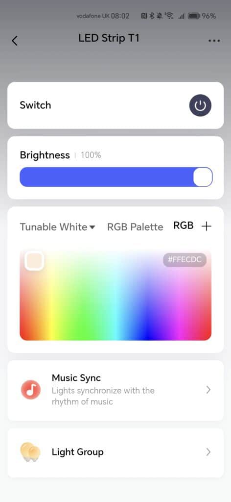 Within the Aqara App, you have a good range of features. You can assign this to a light group for easier whole-room control. You can also enable the music sync to give you a more party atmosphere. It reacts to any sound, so you could use it for dynamic lighting with movies.