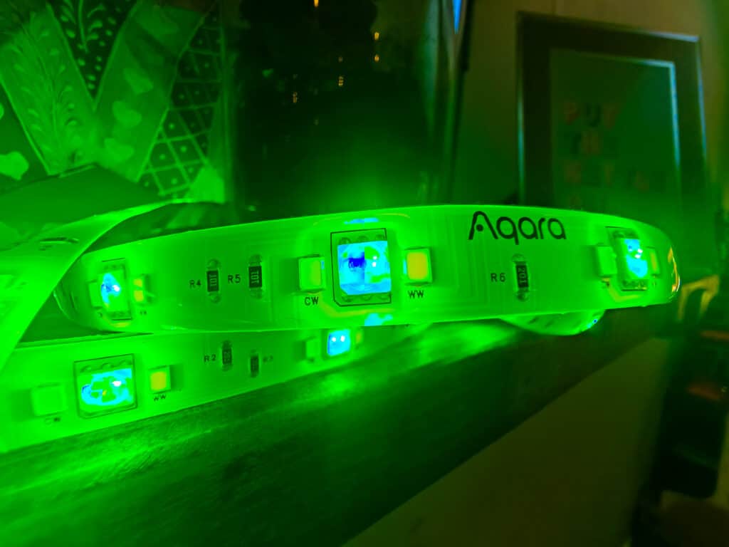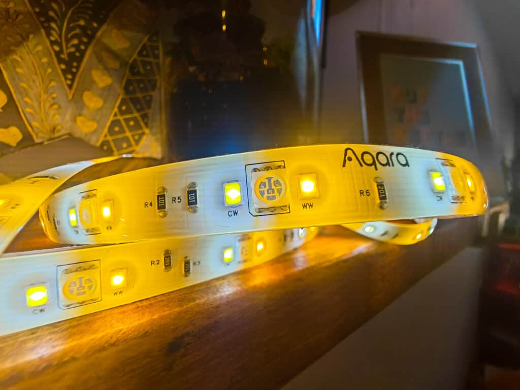 Aqara doesn’t state this, but I have found references on ecommerce sites stating 600 lumens. Another site has suggested that it has a maximum brightness of 1,200 lumens (600 lumens per meter), and the colour temperature is 2,700 to 6,500 Kelvin. This puts it around the same as many competing options.