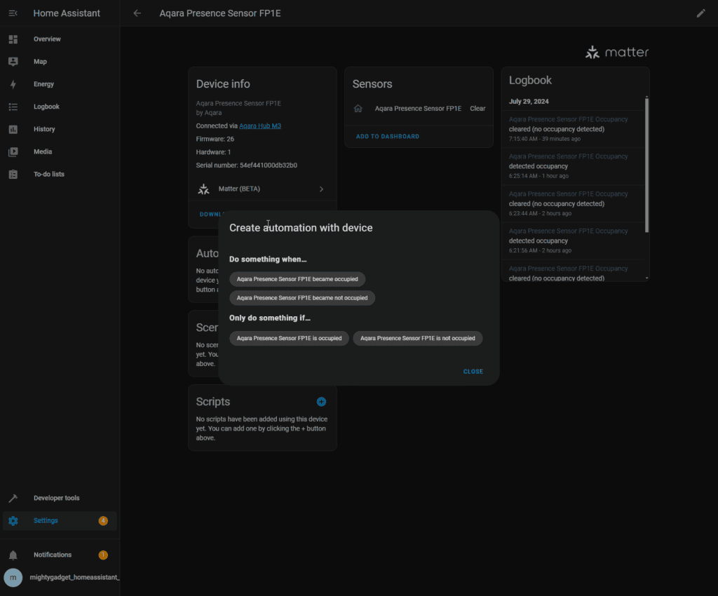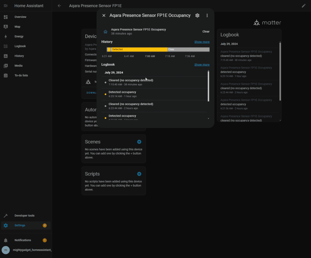 While the functionality is limited with Home Assistant, it is a big advantage over the FP2, which lacked Matter, and when I received it, you could not integrate it with third-party systems.