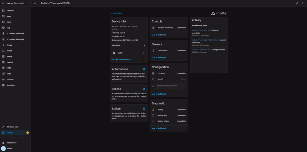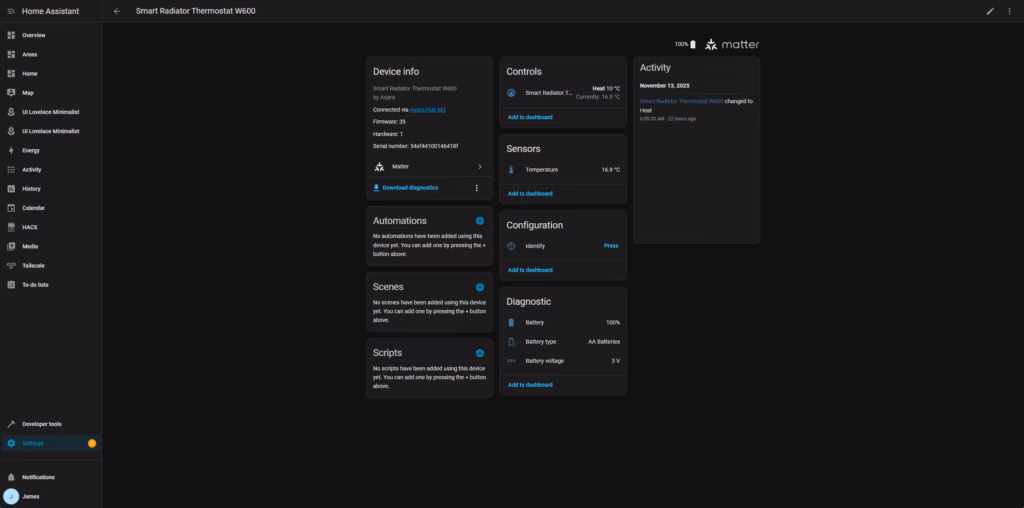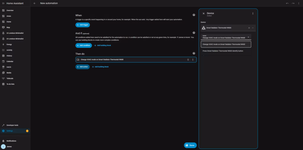 Within Home Assistant, you can switch the valve on or off and have direct control over the temperature, and you have plenty of triggers and actions to create automations.