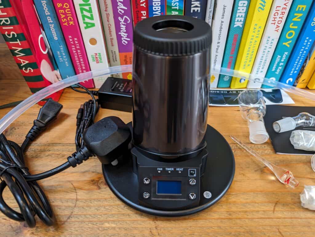 The design of the Arizer Extreme Q is functional and straightforward. It’s not as sleek or modern as some other high-end vaporisers, but it’s practical. The unit itself is relatively compact for a desktop vaporiser, and it has a stable base that prevents it from tipping over easily. The design might not win any awards for aesthetics, but it’s clear that the focus here is on functionality.