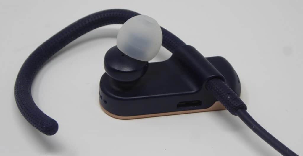 The earphones have a premium look and feel to them, the model I was sent is rose gold, and the cable is a navy blue. Each earpiece is elongated protruding in front of your ear, it appears that all the battery and components are located in the earpieces themselves, rather than in separate units like some other options. Unlike many options, the microUSB port has no cover for it. Hopefully, this is not an issue, and with phones being IP rated with exposed ports, I don’t think it should be.