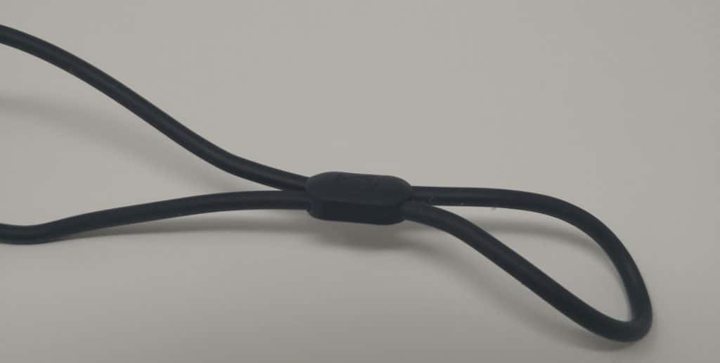 All the cabling and ear hook are coated in a thick rubber material with a rubber cable grip/adjuster in the middle, allowing you to tighten up the cable on the back of your head.