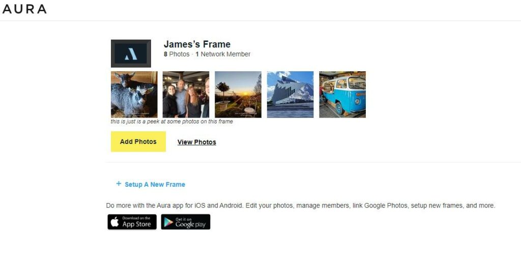 There are a few ways to set up the Aura frames; they are designed so that you can set up images on the frame without physically unboxing it. This is an excellent feature making these perfect for Christmas/Birthday gifts.