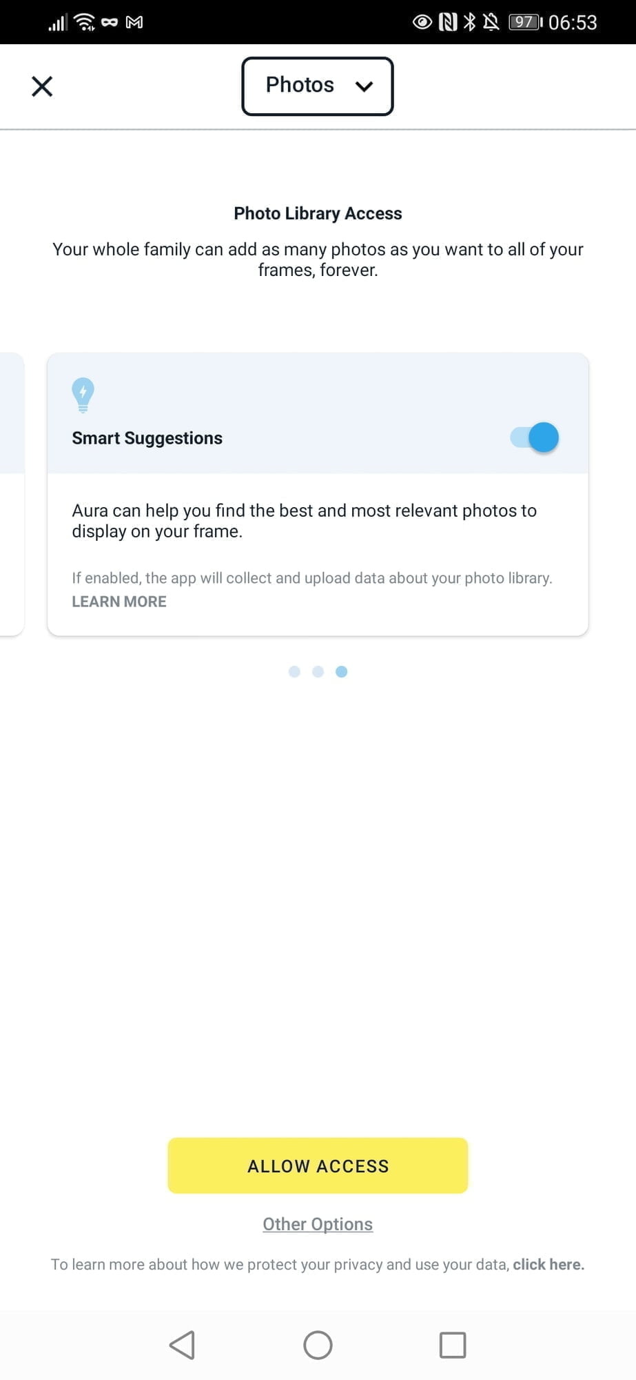 I don’t like the way this uploads your photos to the Aura servers. I wasn’t going to let this affect the overall opinion of the review, instead, just advise and warn users about it. However, for Android users, at least, there is an invasive amount of access to your personal information, above and beyond what I think is reasonable for a smart home device. It is very easy just to accept everything as you set up the app, then unknowingly upload all your photos to their servers.