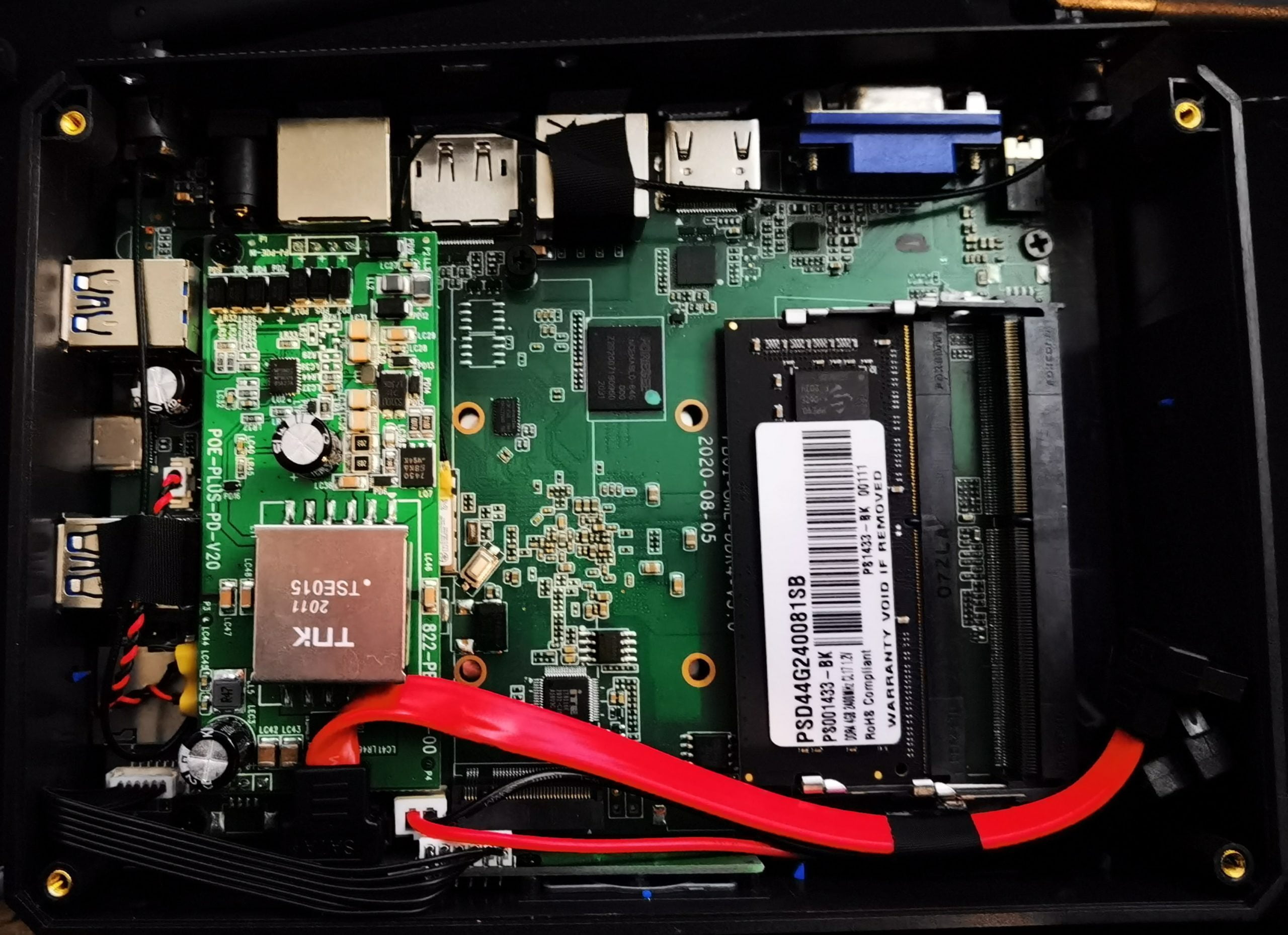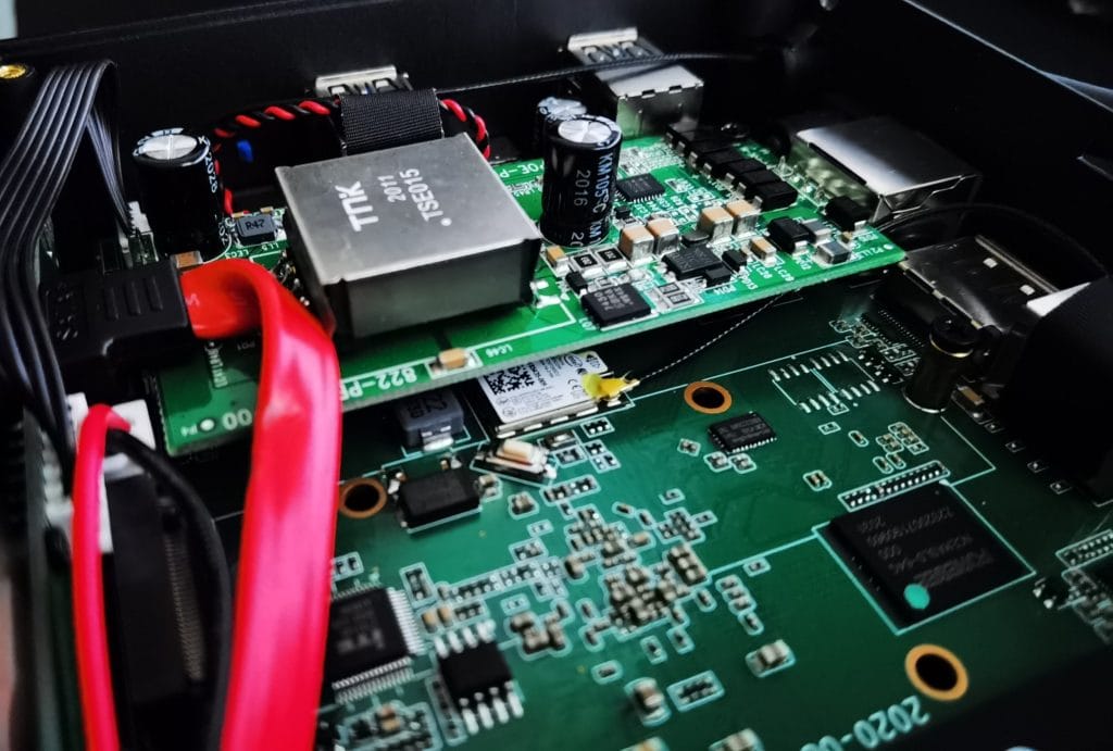 The chassis is relatively easy to open up, just a few Philips head screws. Inside the chassis is easy to access to the SODIMM RAM slots, cables for SATA SSDs and a slot for an M.2 NMVe drive.