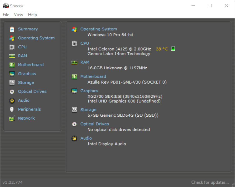 - Processor: Intel Celeron J4125 4 core, 4 threads 2.00 GHz base 2.7Ghz burst with Intel UHD Graphics 600