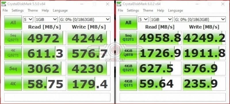 Perhaps the biggest question has been how PCIe 4.0 will improve things. There is not much to test with this at the moment but Overclock3d.net tested a PCIe 4.0 NVMe drive on both chipsets to see the difference. He doesn’t state which drive he used but it goes up to just shy of 5GB/s so it is definitely one of the newly launched PCIe4 drives.