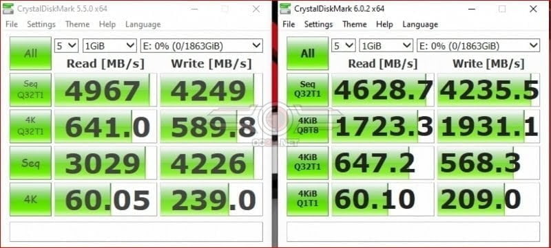 While his performance numbers were the same, one area where they may differ is for expansion slot based drives where there is a mixture of PCIe 2.0 and PCIe 3.0 where the PCIe 2.0 x1 slot will only offer 500 MB/s and an x4 bandwidth slot would offer 2 GB/s.