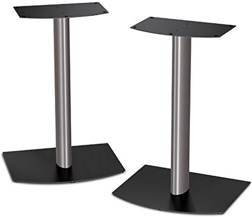 When it comes to speaker stuff, we’d single out the PN77335799 model as a great example. While it has a somewhat complicated name, they’re fairly simple and stable. These “bookshelf” speaker stands have pretty wide bases and come with durable top plates that can withstand up to 20 pounds with ease.