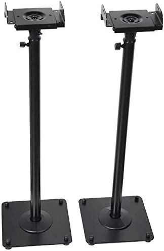 What’s pretty great about them is that you can adjust their height. The height of the top plate can hold your speakers at a height anywhere between 28 and 38 inches from the floor. What’s more, the height is pretty easily adjusted, making these stands very useful for any setting.