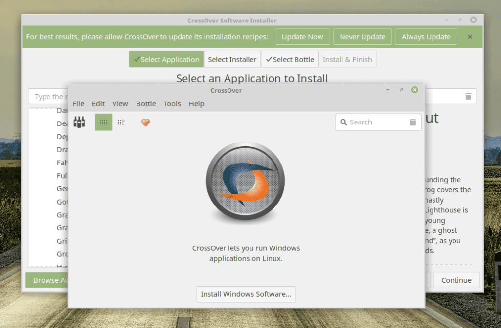 CrossOver is based on Wine but offers some additional features and better integration with Linux. It has tweaks to improve compatibility with many Windows apps and games.
