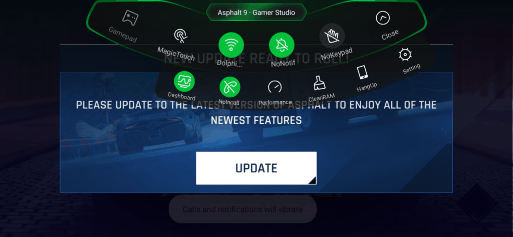 Then when in a game, with a swipe down from the upper left corner you open up the gamer studio which allows you to do things like block calls, hang up on a caller, and disable the keypad.