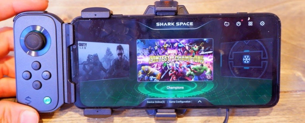 My sample came with one controller, which you then attached to the phone with a clamp-style device. When I received the Black Shark 2 that had a special case that then allowed a controller to be attached either side.