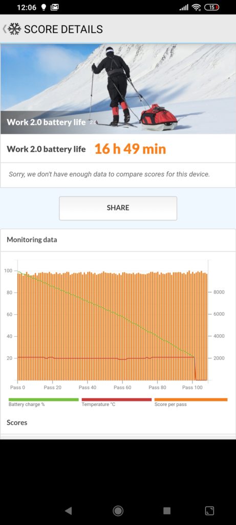Running the synthetic PC Mark Work 2.0 battery test, this scores and astronomical results with 16H and 49 mins giving me a 14h 13-minute screen on time.