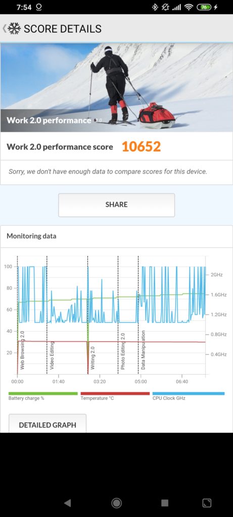 PC Mark 2.0 is a very clear example of this, the Black Shark scores much lower, but looking at its CPU clock graph it only hits 2Ghz maybe 3 times, whereas the Realme locks the clock on 2Ghz.