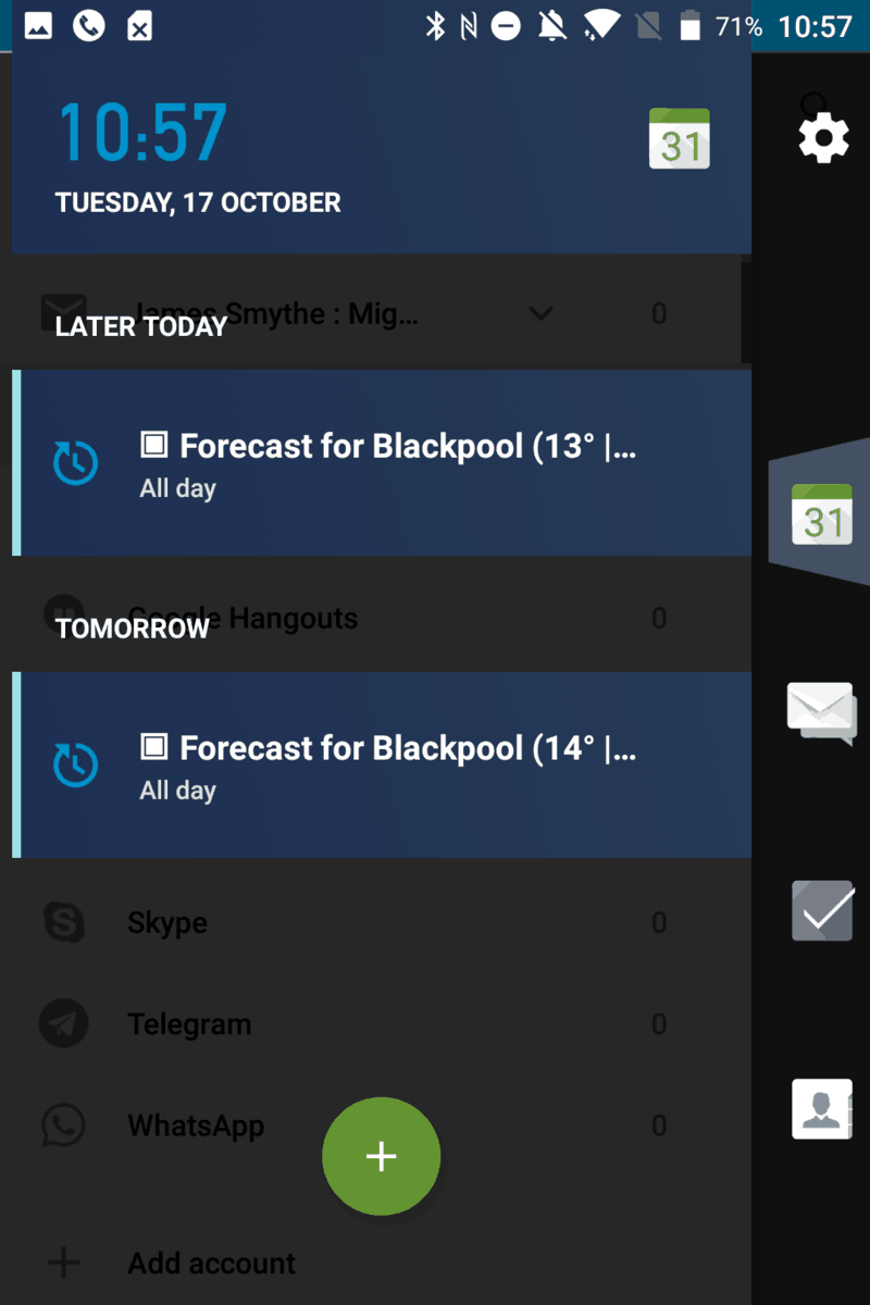 You also have a productivity tab which compliments the Hub, this is ever present on your screen and allows you to swipe it open giving you access to your calendar, notes, inbox and contacts. It is a nice feature, but I didn’t actually use it too much, but then again, my calendar events are pretty sparse.
