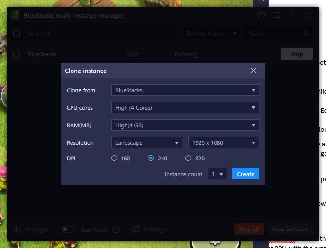 There are two options for setting up new instances, you can clone an existing profile or create a brand new one. Cloning works well, avoiding you having to re-install everything and login into all your apps. However, if you plan to play 1 game with multiple accounts, you would need to reset the game or use a new instance (as it will be logged into your main account).